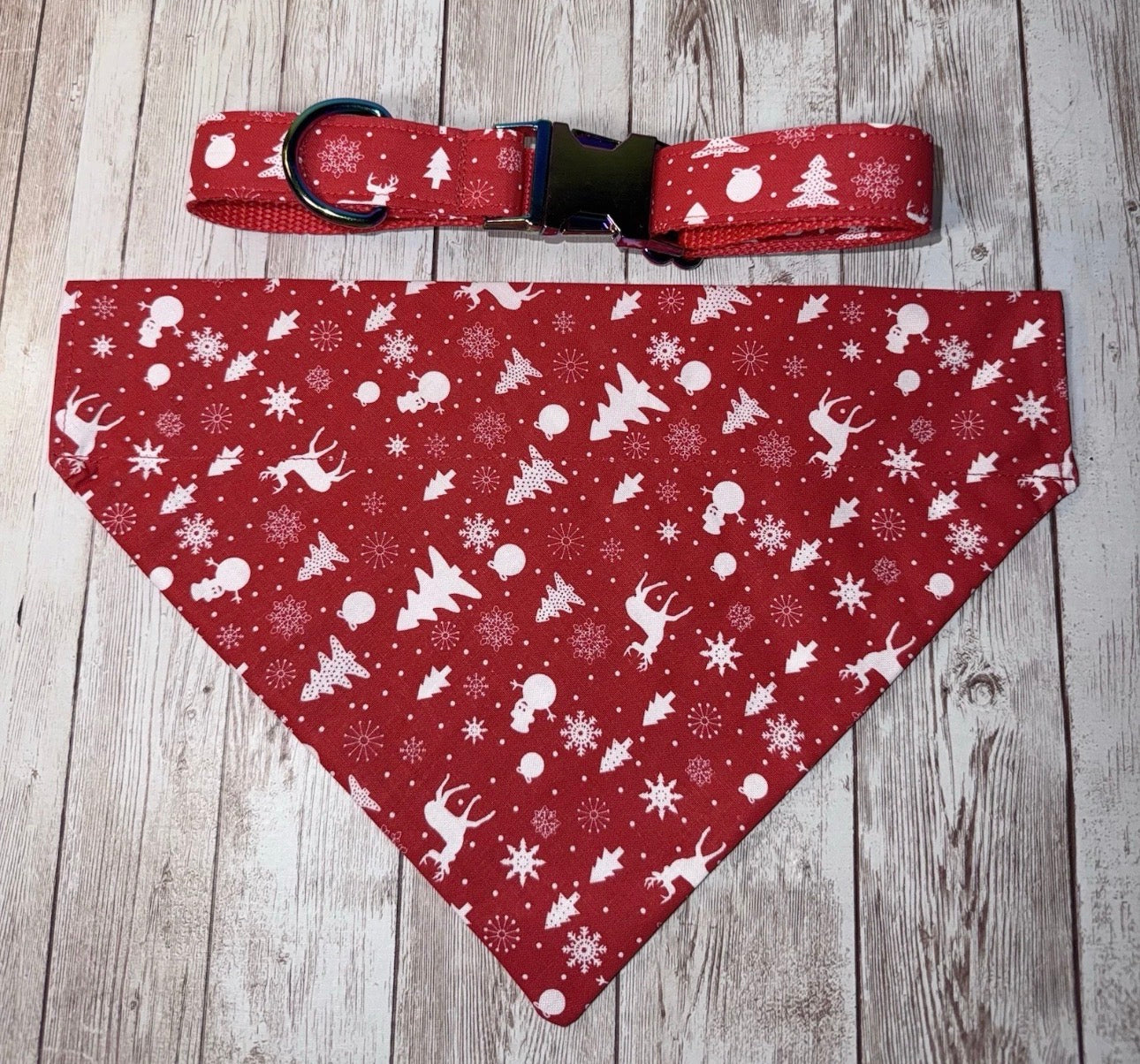 Dog Collar & Bandana Reindeer Red Christmas Theme Large Handmade Heavy Duty NEW