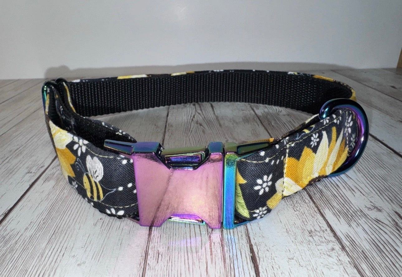 Dog Collar & Bandana Yellow Sunflower Print Large Handmade Heavy Duty NEW