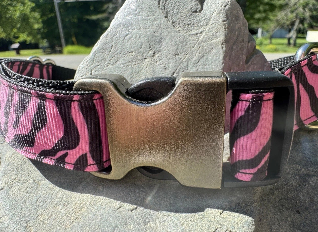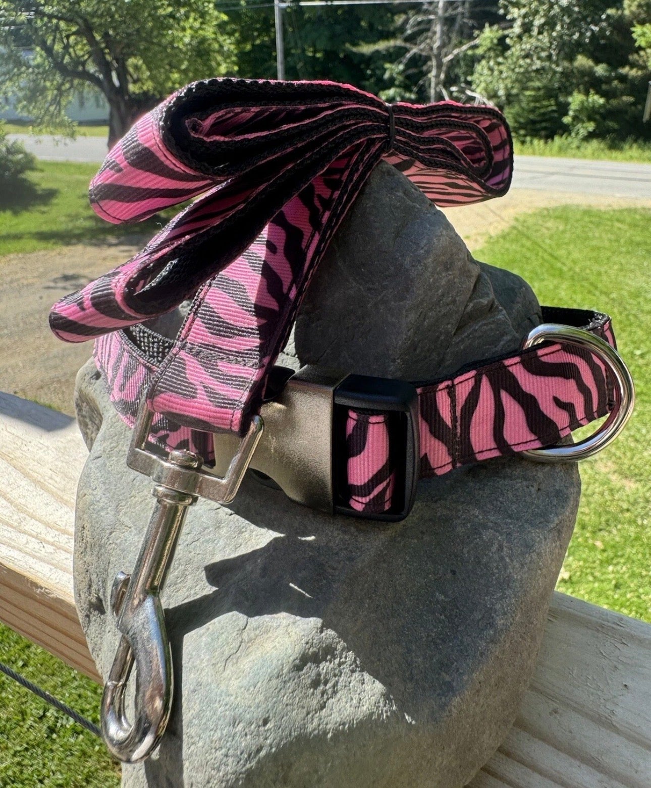 Dog Collar & Leash Pink Zebra Print Large Handmade Heavy Duty NEW